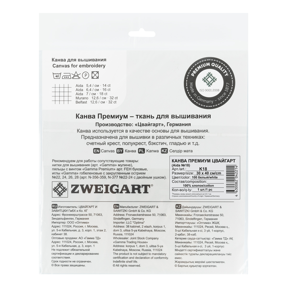 Канва К18 Zweigart Aida Premium №18 ФАСОВКА 100% хлопок 30 х 40 см ± 2 см 100 белый. В интернет-магазине ВИАЛ широкий ассортимент товаров, быстрая доставка и регулярные скидки.