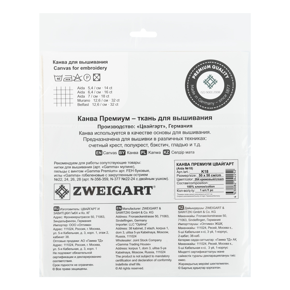 Канва К18 Zweigart Aida Premium №18 ФАСОВКА 100% хлопок 50 х 50 см ± 2 см 264 кремовый. В интернет-магазине ВИАЛ широкий ассортимент товаров, быстрая доставка и регулярные скидки.