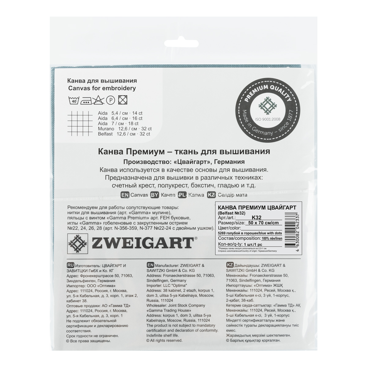 Канва К32 Zweigart Belfast №32 ФАСОВКА 100% лён 50 х 70 см ± 2 см 5269 голубой в горошек. В интернет-магазине ВИАЛ широкий ассортимент товаров, быстрая доставка и регулярные скидки.
