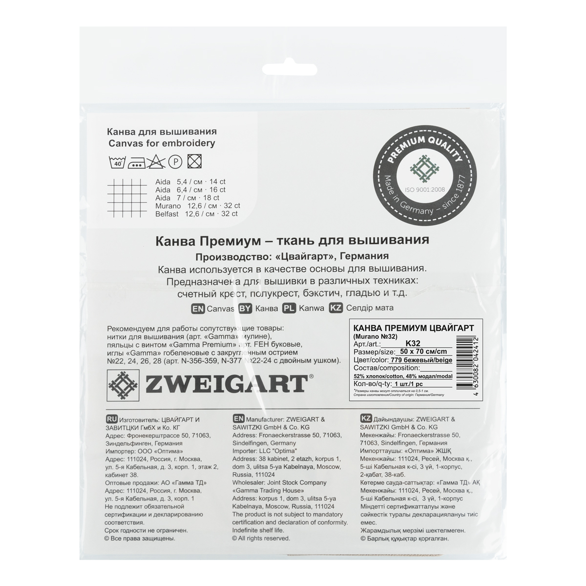 Канва К32 Zweigart Murano №32 ФАСОВКА 52% хлопок, 48% модал 50 х 70 см ± 2 см 779 бежевый. В интернет-магазине ВИАЛ широкий ассортимент товаров, быстрая доставка и регулярные скидки.