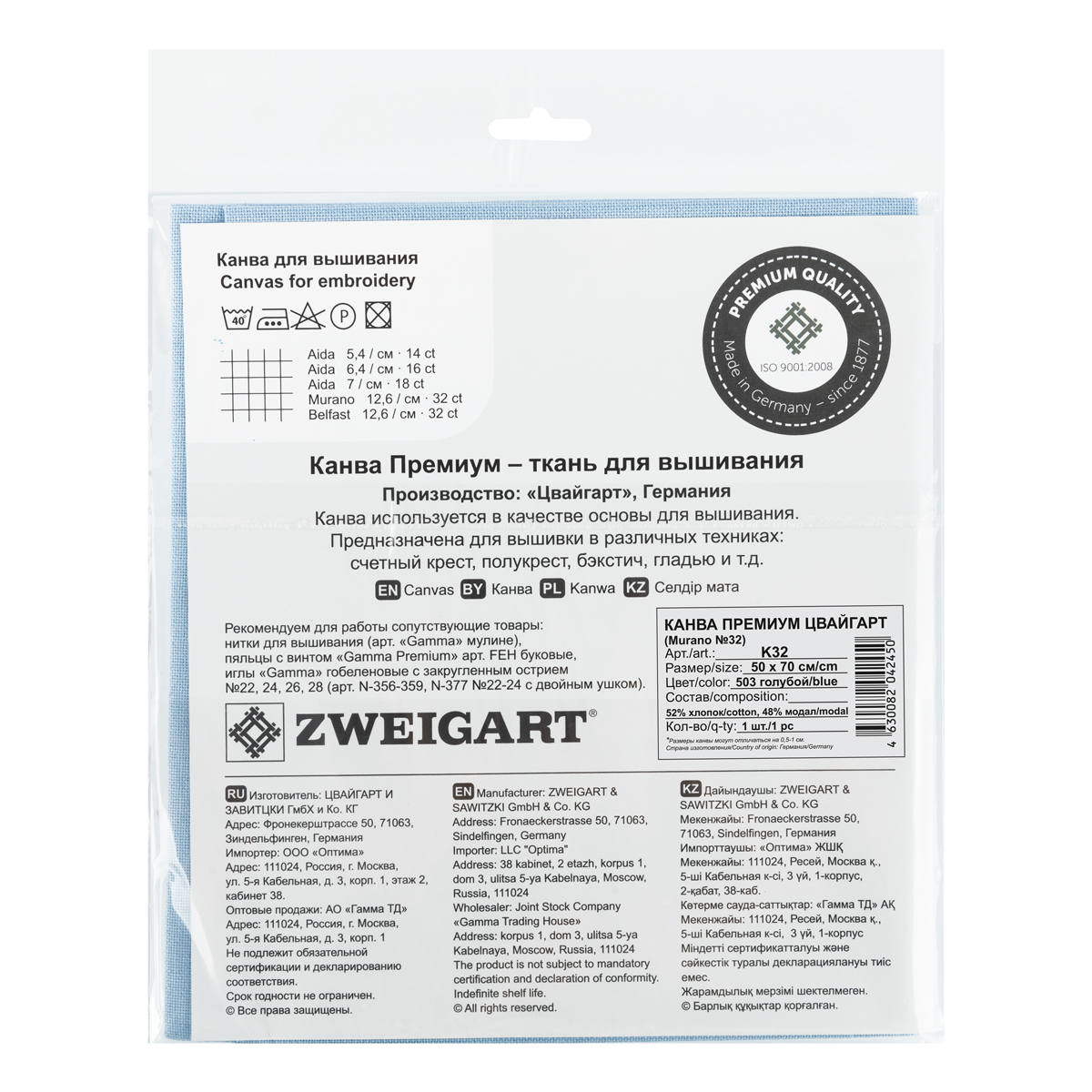 Канва К32 Zweigart Murano №32 ФАСОВКА 52% хлопок, 48% модал 50 х 70 см ± 2 см 503 голубой. В интернет-магазине ВИАЛ широкий ассортимент товаров, быстрая доставка и регулярные скидки.